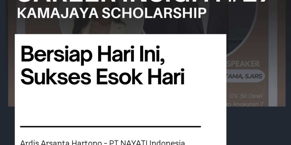 KAMAJAYA Scholarship kembali menyelenggarakan program pengembangan karier melalui Career Insight #27 yang dilaksanakan pada Jumat, 30 Januari 2026. Kegiatan ini menghadirkan Kak Ardis Arsanta Hartono, Penerima Beasiswa KAMAJAYA Scholarship Angkatan 3, yang saat ini berkarier sebagai Marketing Delivery Staff di PT NAYATI Indonesia, sebagai narasumber utama.Dalam sesi bertajuk “Bersiap Hari Ini, Sukses Esok Hari”, Kak … Continue reading Career Insight #27: Bersiap Hari Ini, Sukses Esok Hari