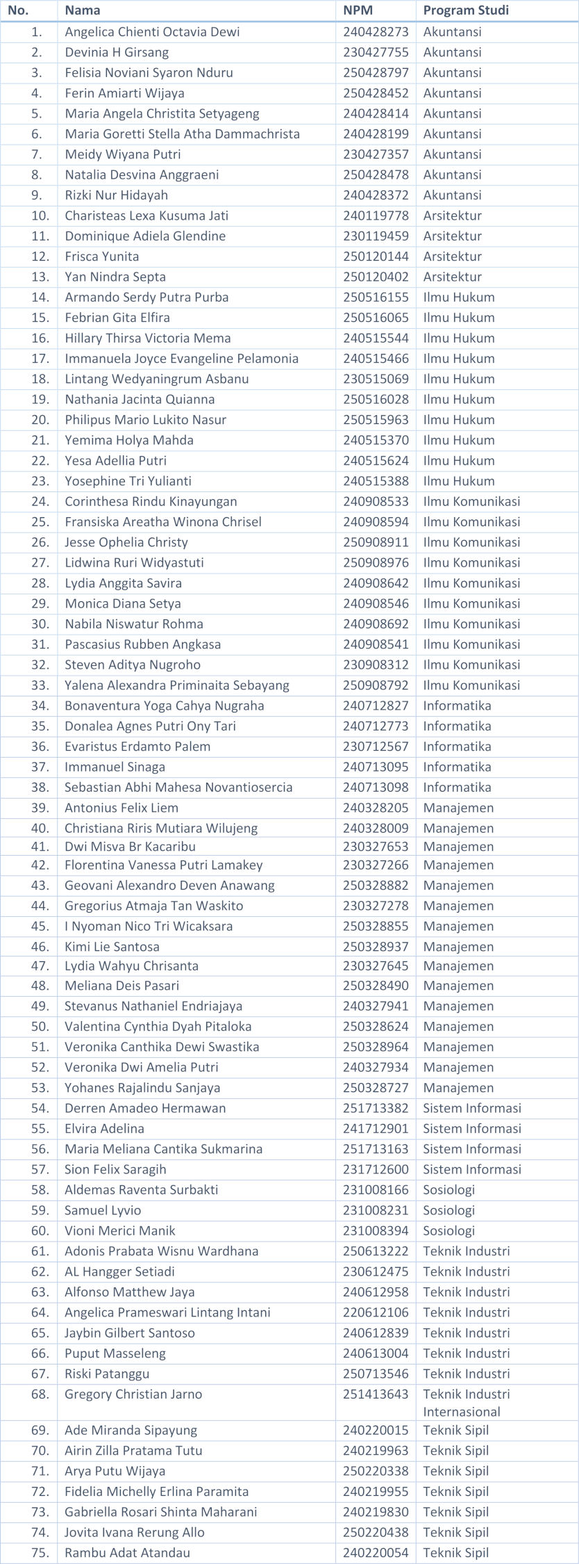 Berdasarkan hasil pemeriksaan kelengkapan dokumen, maka berkas pendaftaran Beasiswa KAMAJAYA Periode 2026/2027 atas nama-nama berikut ini dinyatakan LENGKAP.